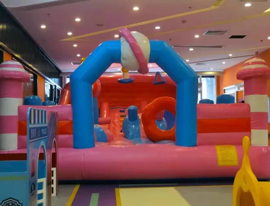 As soon as you walk in you’ll see a giant ball pit with slides and climbing stuff. Keep going, and you’ll find a variety of toys along with a huge inflatable pink bounce house with two slides.