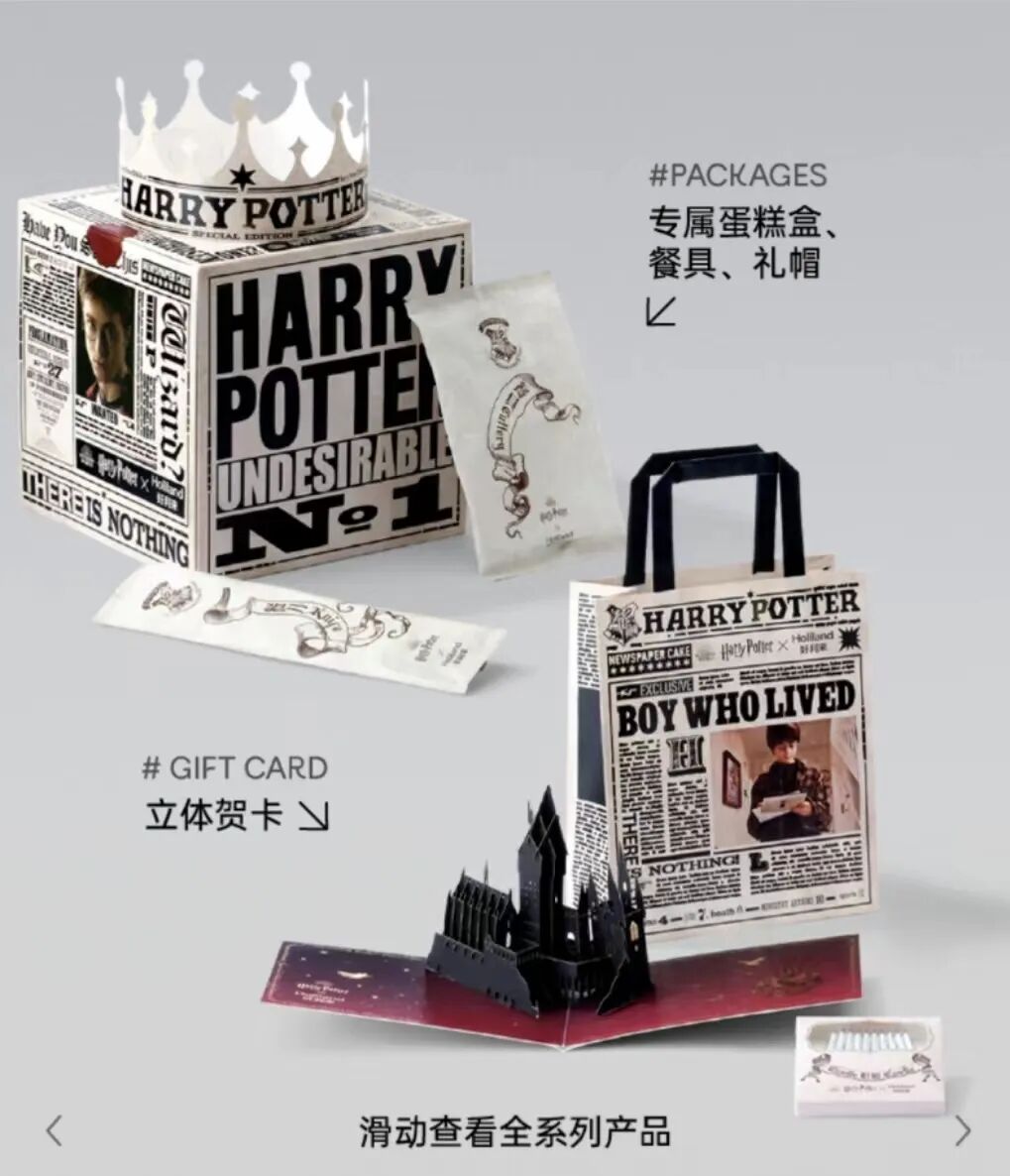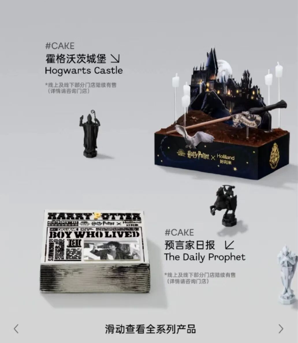 The Daily Prophet chocolate cookie cake for RMB 299 looks like a stack of the Wizarding newspaper with the famous headline "The Boy Who Lived."