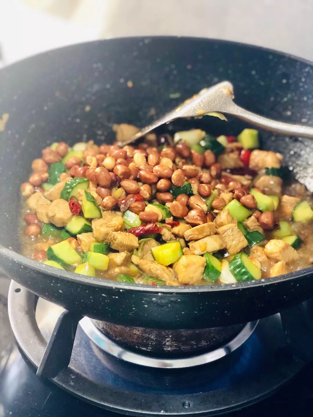 Add the peanuts and stir-fry for a further 2 minutes. Dish out the Kung Pao Chicken and serve!