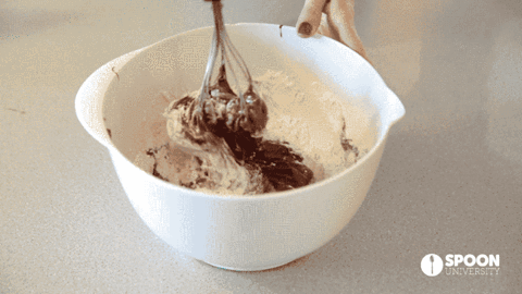 Step 2: Measure and mix all the ingredients in a bowl. It’s really hard to get all the Nutella in, so I used a spatula to scrape it in.