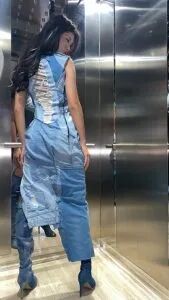 Another student who made her project based on the fashion industry is Sophie Yi. She made a formal gown from old jeans that don’t fit her anymore. “For me, buying clothes is the most tangible form of overconsumption,” she states. “My body has stopped growing, but I have not lost the habit of buying new clothes every few weeks.” With her project, she intends to inspire others to create a new purpose out of their old clothes that they have stopped wearing by showing them that “up-cycling is fun, and materials are not a restriction—everyday garments such as denim can be revamped to form something completely different,” hence the denim jeans being turned into a formal dress. With her project, Yi aims to combat the issue of overconsumption and hopes to “provide a sustainable alternative for future consumption.”