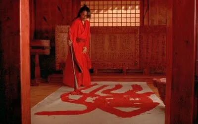 The next time Chinese calligraphy stirred my soul was its appearance in the award-winning film Hero by Yimou Zhang, where the swordmaster Broken Sword – played by the enigmatic Tony Chiu-Wai Leung – writes the character for 劍 jiàn sword, likening the art of swordplay to calligraphy.
