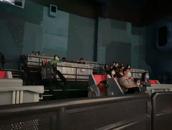 Pro Tip: We discovered that the quesy-of-stomach could request to sit in the front row with non-moving seats!
