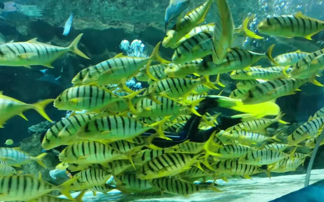 Going down the escalator decorated with underwater marine life, my excitement level increased to a max 10. Then the escalator takes us to the B1 level and I couldn't believe my senses. Not only was there no marine life, but my nostrils were filled with the scent of chemically-soaked sausages and the sounds of arcade machines assailed my ears. This was not quite what I was expecting for a serene aquarium. But then, we found another set of escalators that led to B2 level, and my hope for a chill but fun outing was renewed.
