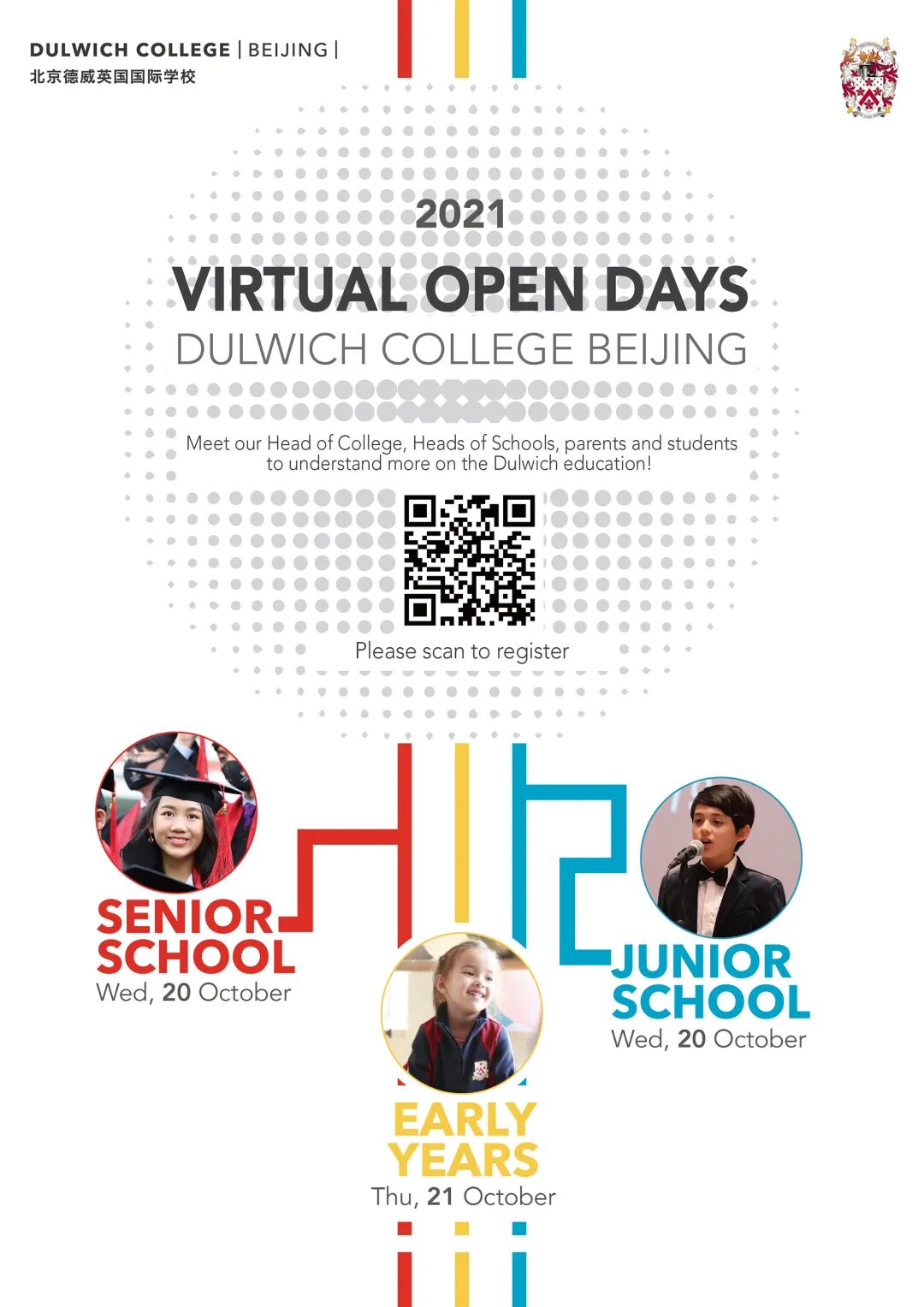 Dulwich College Beijing will host a series of virtual open days for prospective families to meet with our academic leaders and students in October.