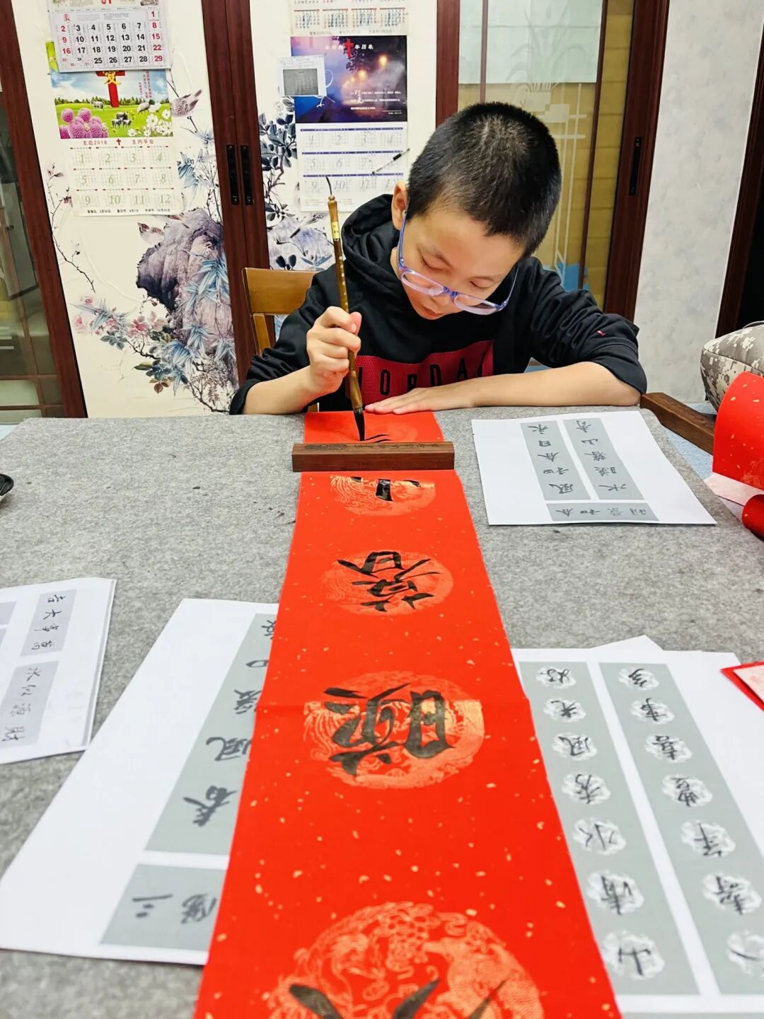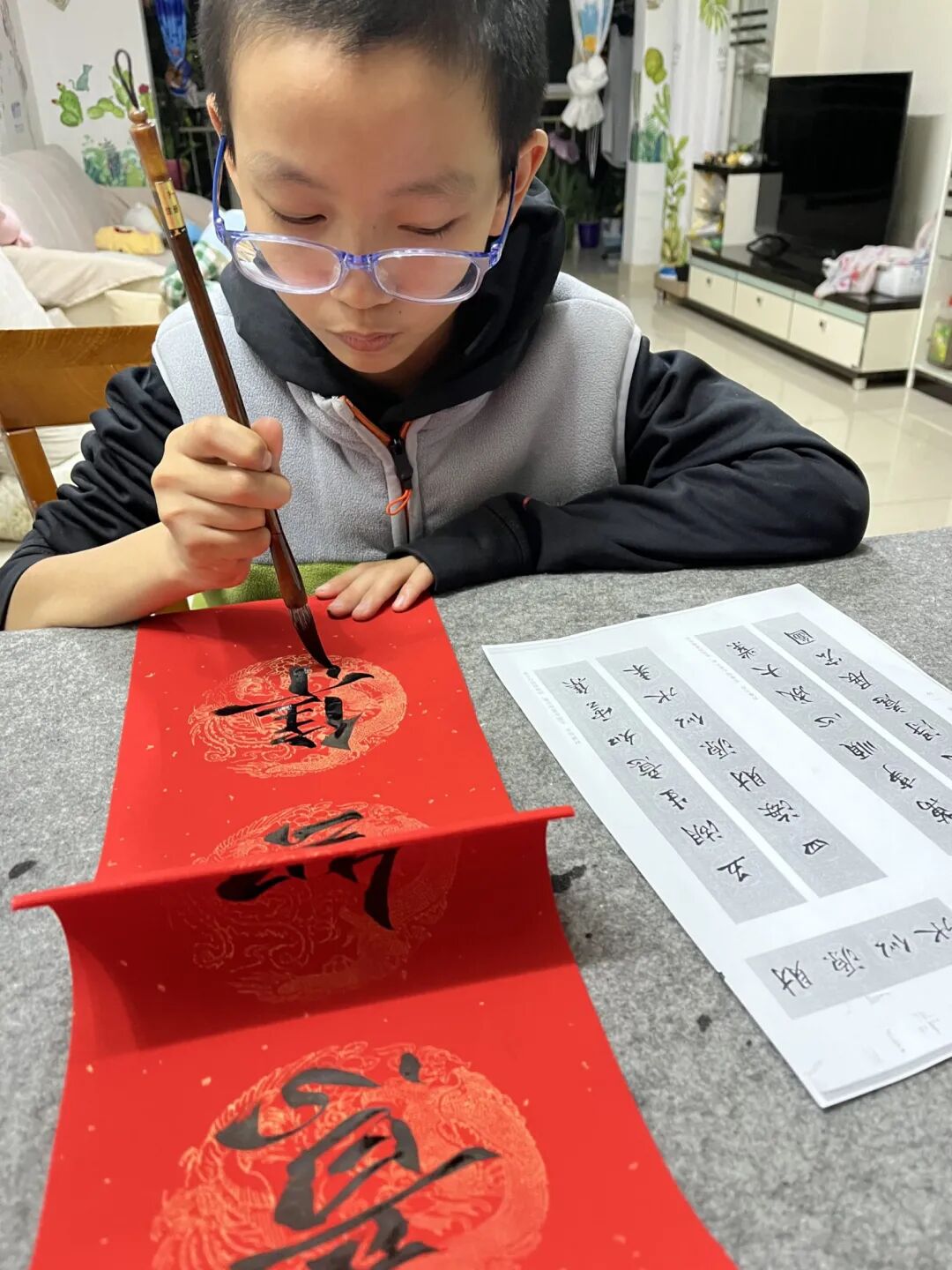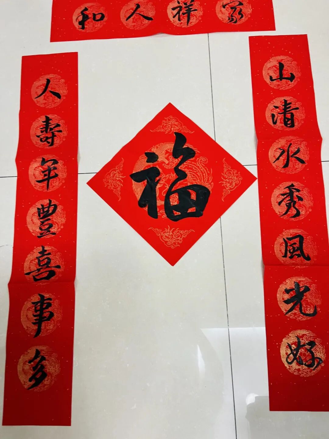 A few days ago, a local acquaintance reached out to me and asked if I was interested in buying some handwritten calligraphy scrolls. These traditionally come in a couplet or triplet and are to be pasted outside your door, ushering in well wishes for the new year. In this set, the horizontal inscription says “May your family be kind,” while the scroll on the right reads, “The mountains and rivers are beautiful scenery” and the one on the left says “May you have a rich life with happiness.” Incidentally, they were all handwritten by her 12-year-old son!