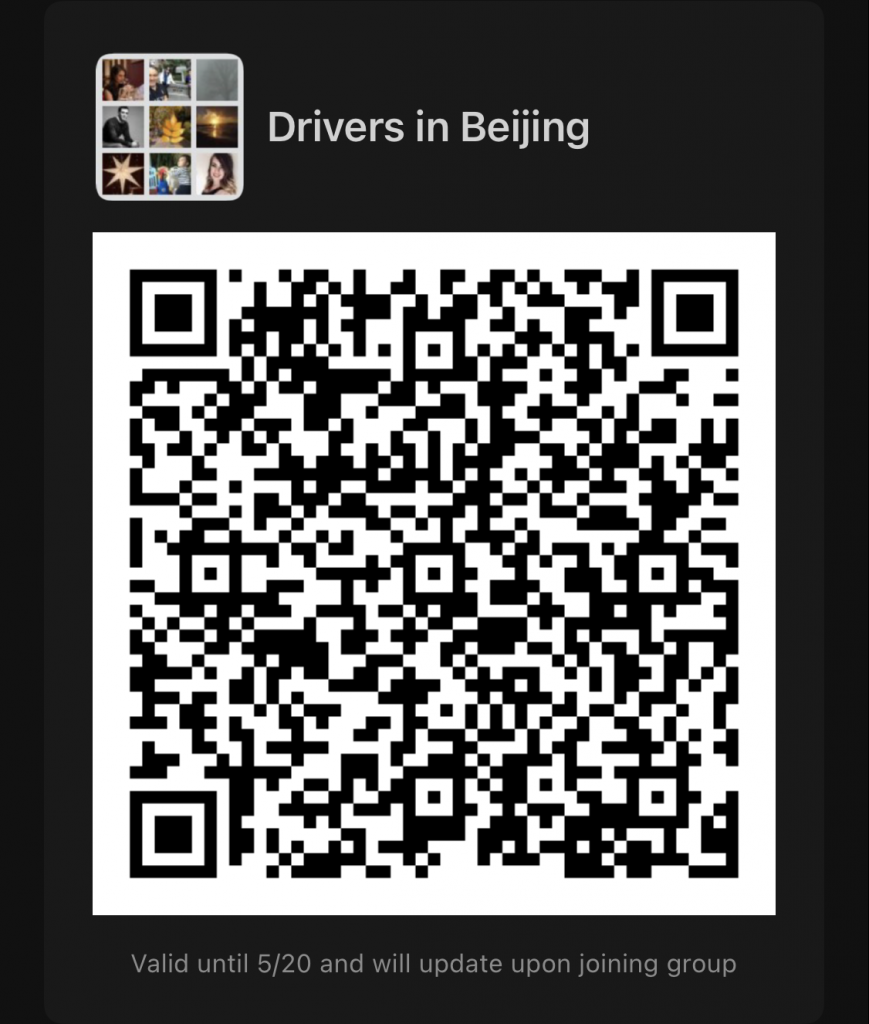 There are also WeChat groups dedicated to personal drivers such as Drivers in Beijing (QR code below).