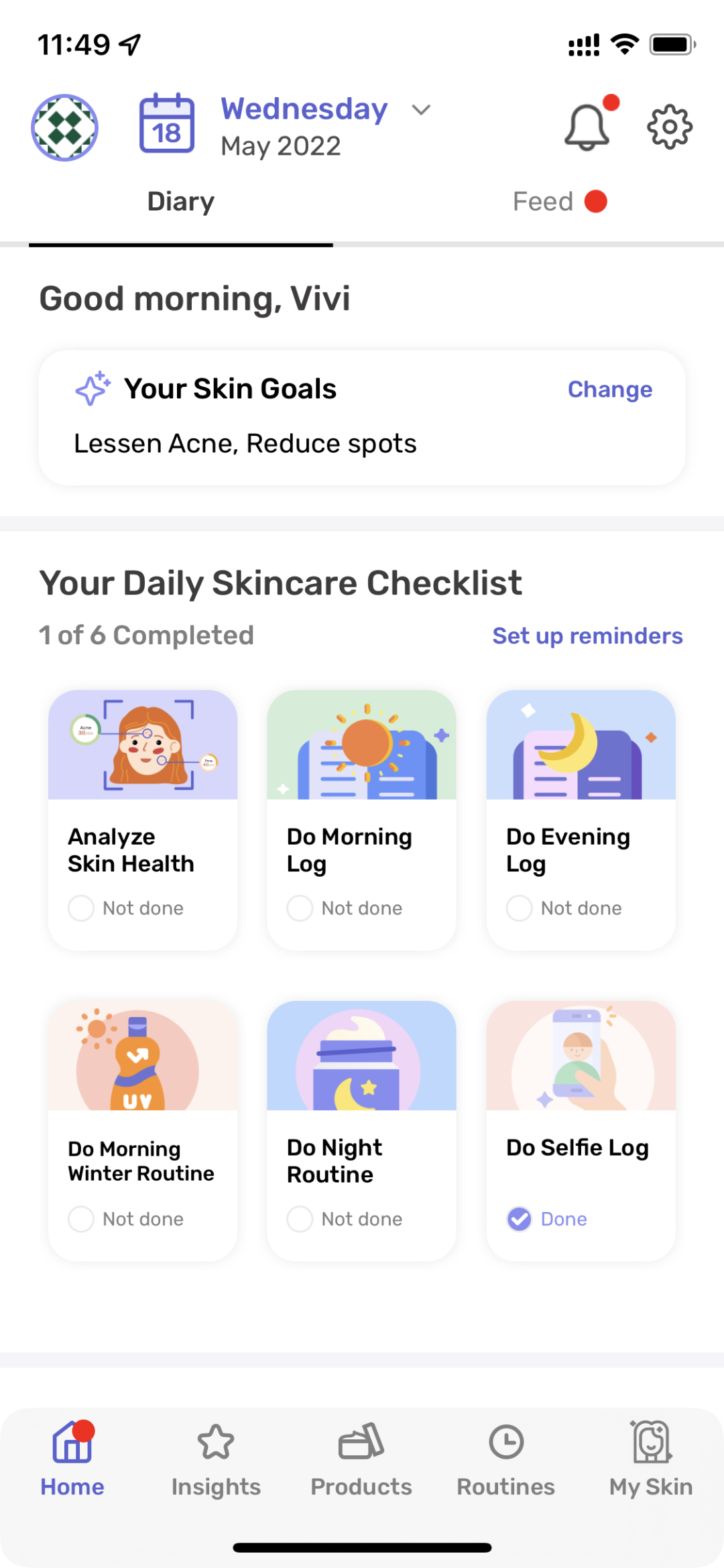 Right off the bat, let me recommend this awesome free app I found to log your skincare routine as well as analyze your skin health and compare daily selfies so you can track how your skin changes over time. It even lets you record the products you use and reminds you when they are about to expire.