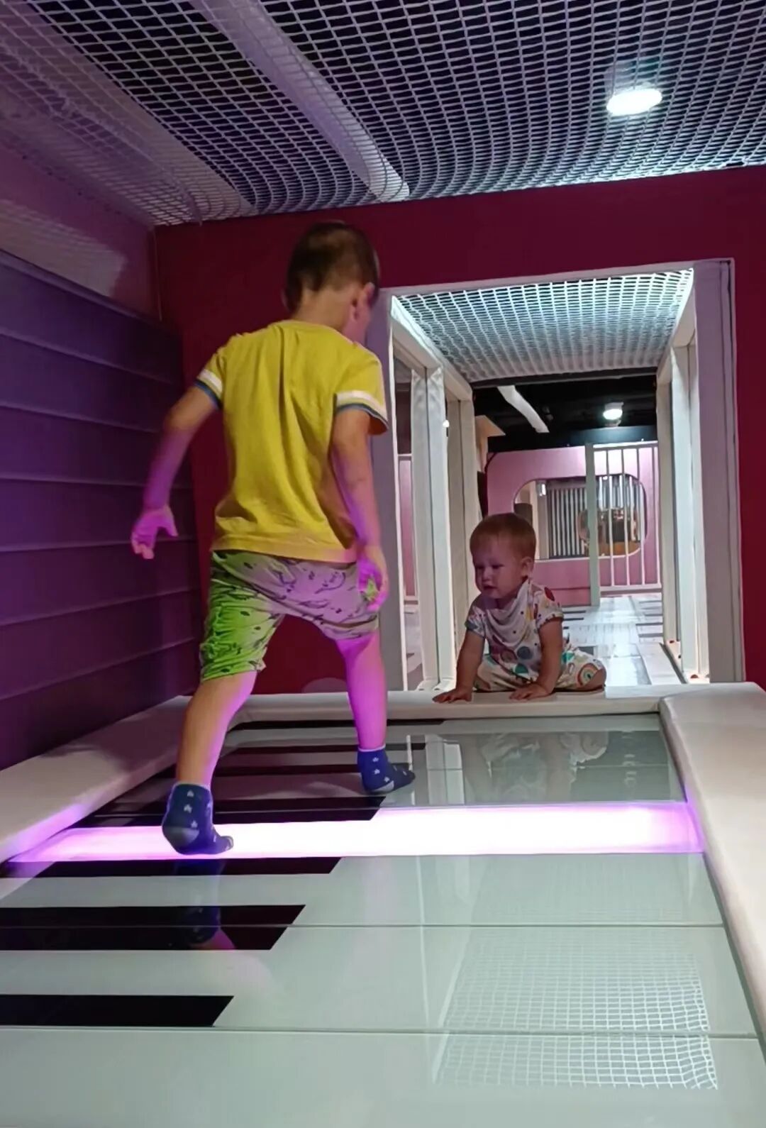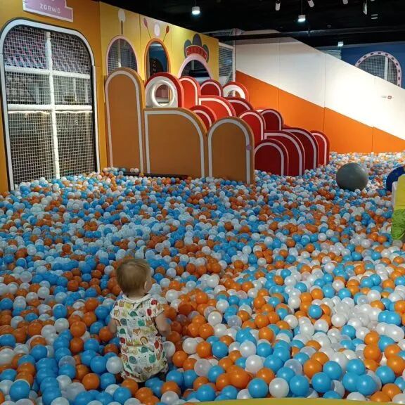There are trampolines, slides of different sizes, climbing structures, a mini carousel, activity panels, foam play pieces, and also interactive walk-on piano keys that my toddler found scary at first, but as soon as he figured them out I couldn’t drag him away from them. As for Noa, he finds air tubes fascinating, and since the playground has them in every play area he got pretty busy watching balls whizz through tubes. There is, of course, a dress-up room, a supermarket, and a play kitchen for the kids to enjoy.