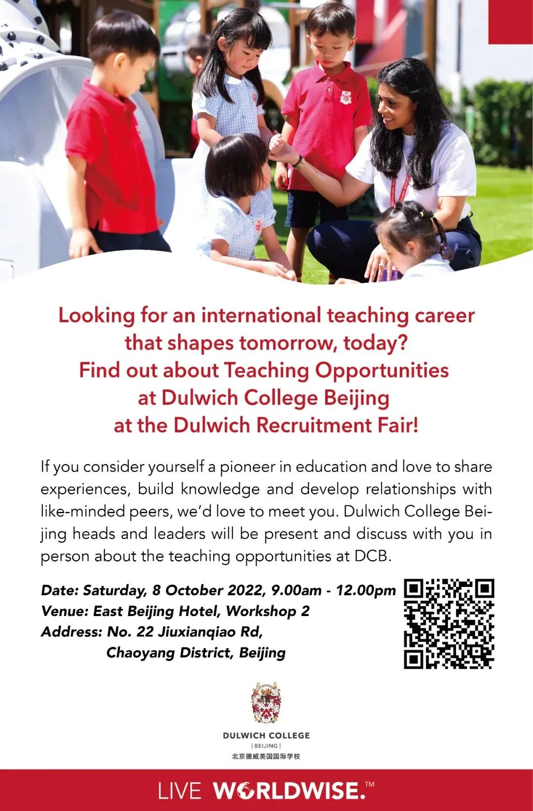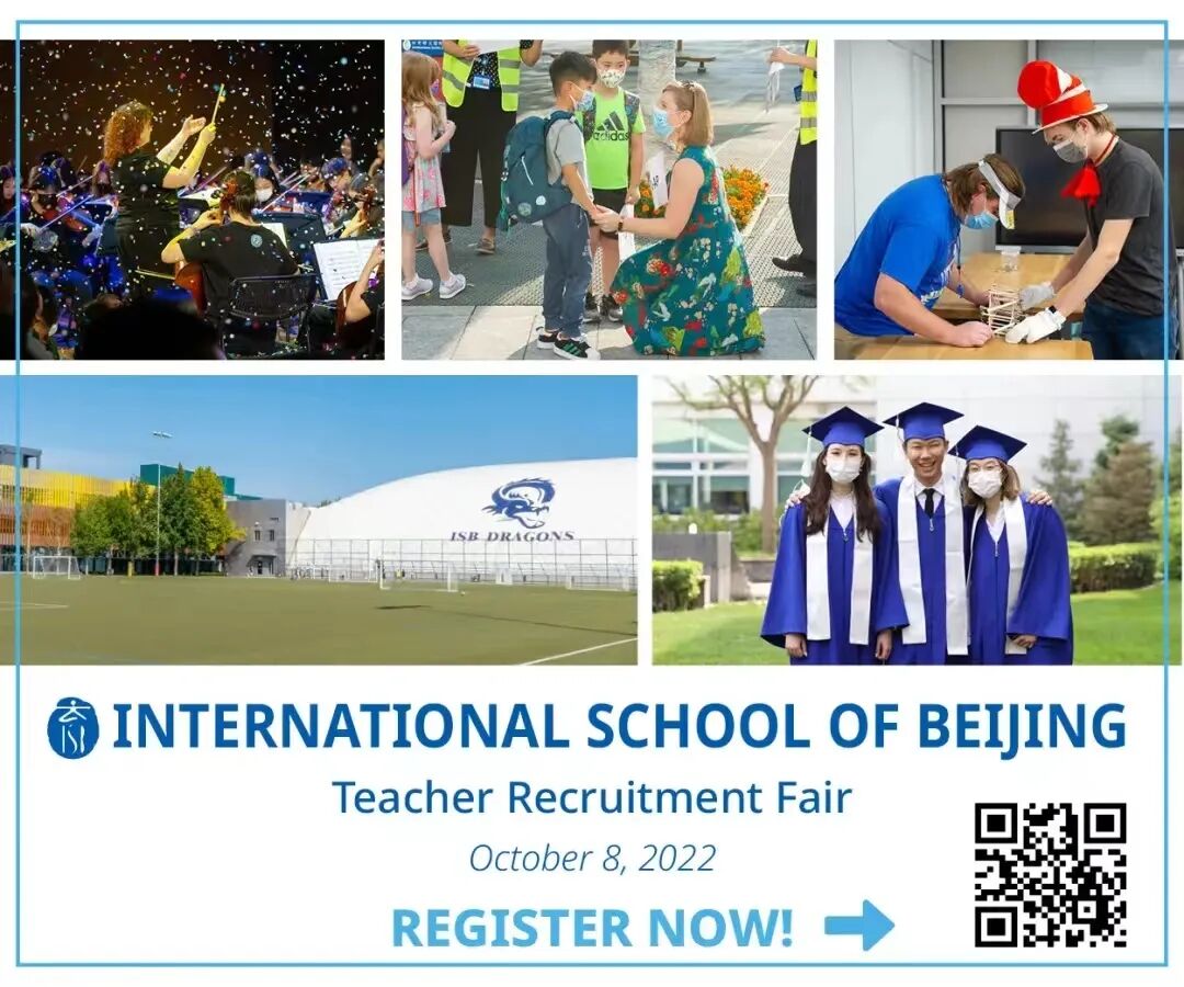 International School of Beijing (ISB) is hiring for the 2023-2024 school year. They’re looking for qualified teachers who want to join a dynamic group of educators. To meet the team, register for their recruitment fair on Sat, Oct 8 by scanning the QR code below.
