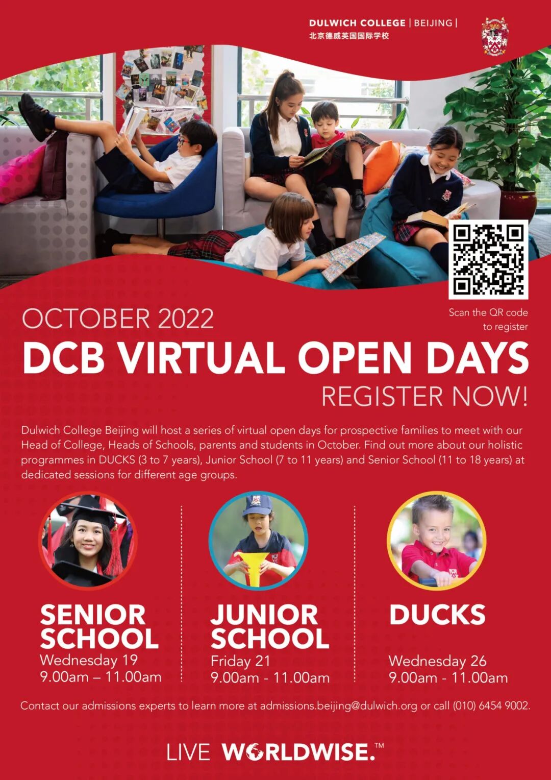 This is a great opportunity for prospective students and parents to meet the Head of College, Head of Schools, parents, and students at Dulwich College Beijing (DCB). Find out more about the programs offered at DCB and ask the school all your DCB-related questions during their virtual open day.