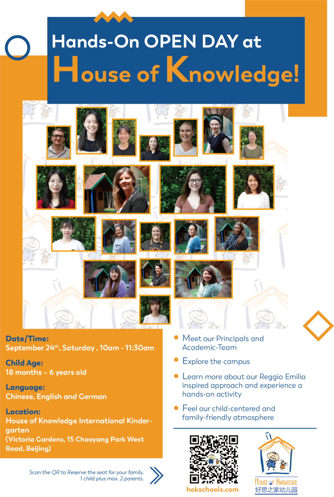 House of Knowledge (HoK) is having a hands-on Open Day on Sat, Sep 24. Children between the ages of 18 months and 6 years are welcome to attend with their families. HoK teachers will lead the family in activities to get to know the school and its philosophy. This is a great opportunity to meet the HoK teachers (foreign lead teacher and Chinese teacher) as well as their academic team.