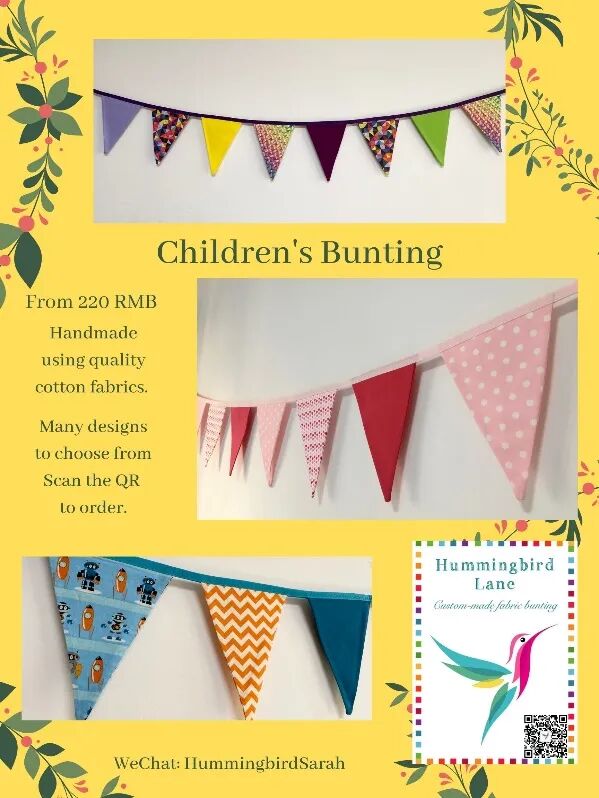 Reusable decorations reduce waste and bunting is perfect to give and send as gifts as it is compact and light weight! Sarah welcomes custom orders and can help you choose and design bunting to your specifications for any occasion.