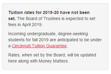 截止目前,加州大学官网显示2019至2020年的学费尚未确定,董事会预计将于2019年4月设定费用。