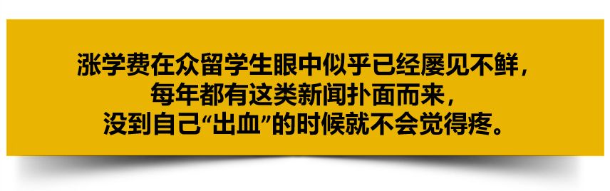 在这个数字基础上再看加收学费,对尚未有稳定收入的留学生而言,这些赤果果冷冰冰的数字显然是一个无底洞!
