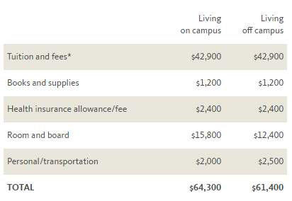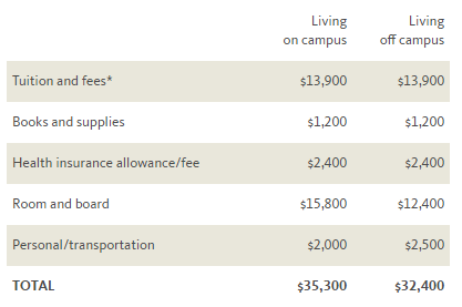 州内居民费用共计需3万美元以上,而州外及国际学生共计需6万美元以上。整整翻一翻。
