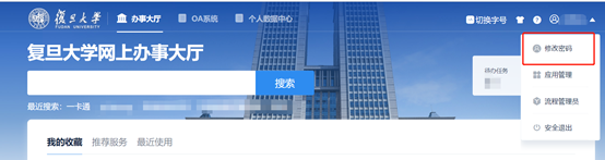 (4)2021年新入学的学生登录UIS系统后,请尽快设置预留手机号码,同时修改默认密码,以保障账户的安全。预留手机号码修改方法:登录eHall网上办事大厅后,点击右上角三角形图标,选择“修改密码”-“修改绑定手机”,或直接访问http://myform.fudan.edu.cn/eservice/find_password