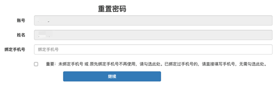 输入“学工号”及账号对应的姓名,点击“继续”按钮。