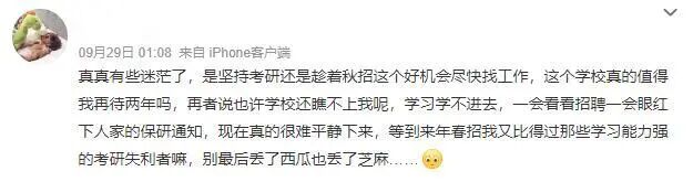 “ 如果现在不参加秋招,就又错过一次机会。如果专心考研,最后还失败了,到时候怎么办?”
