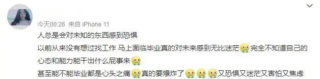 再加上疫情原因,毕业生过去的大学生活中,能够参与的社团活动、社会活动本就有限。线下实习变成了线上实习,与社会外界接触的时间大大限缩,毕业生们也就更缺乏认知自我的机会。