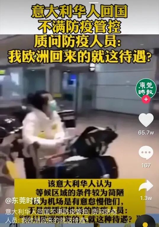 难道你是欧洲回来的,你就可以高人一等、无视规则、破坏程序了吗?要知道,国内疫情已经把大家折腾的筋疲力尽,现在又不得不打起精神防止境外疫情输入,你排队辛苦,机场检测人员就不辛苦?你抱怨检查时间长、流程慢,拜托,他们不是只检测、服务你一个人的,就拿3月10号来说,上海海关就检疫了出入境人员10300人。就因为你沾了一点“洋气”、喝了一点“洋墨水”,就可以口口声声说什么“我欧洲回来的”,是谁给你的优越感,让你以为自己高人一等、可以凌驾众生?出来混,早晚要还的,太过狂妄自大,最终还是要遭报应的!刚刚,消息传来,第一幕剧中,那位澳籍女子所属的公司@拜耳中国 发布声明:其实,我们不是说海外华人不该回国,祖国永远是广大华人和华侨的家。同为华夏儿女,同为龙的传人,同为一个母亲的孩子,海外游子回家,祖国永远敞开怀抱欢迎!我们不会忘记,前段时间国内肺炎爆发时,是广大华人华侨,不顾阻力,费尽心思,不断去各国各地搜罗医疗物资,再通过各种方法,给国内送来了一批又一批的医疗物资!看吧,像这位意大利留学生瑶瑶,这样负责任地回国,我们绝对是热烈欢迎,热情点赞!我们这里批评的,只是那些自私自利的人,他们自以为高同胞一等,回国后趾高气扬,不可一世,甚至还瞒报病情、带病归国,祸害同胞。因为只有我们懂得,现在国内疫情能够持续好转,我们到底付出了多少,我们的国家到底付出了多少,我们的医护人员到底付出了多少!其实,就留学生要不要回国,张文宏说得很明白: