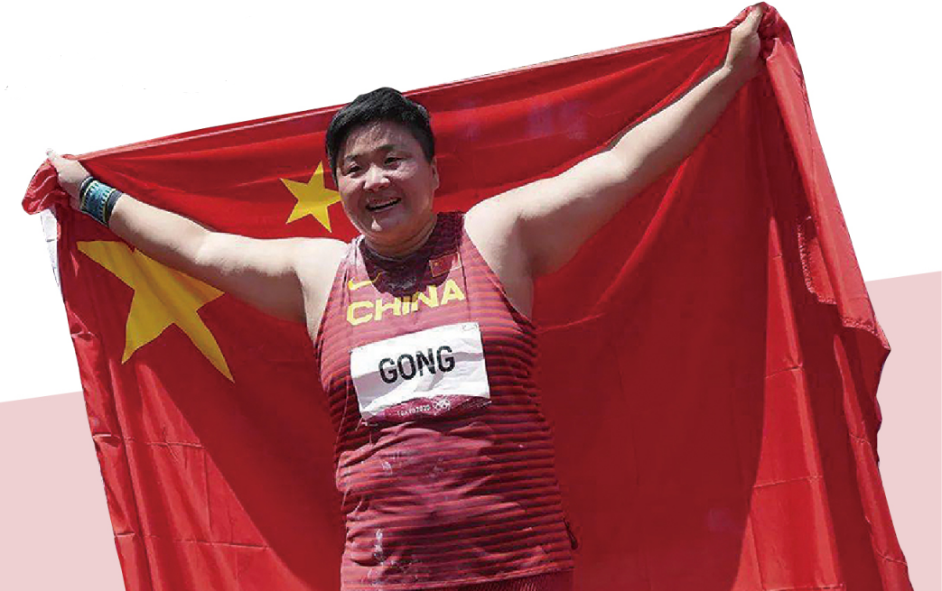 ▲2021年8月1日,在2020年东京奥运会田径女子铅球决赛中,我校校友巩立姣以20.58米成绩夺冠