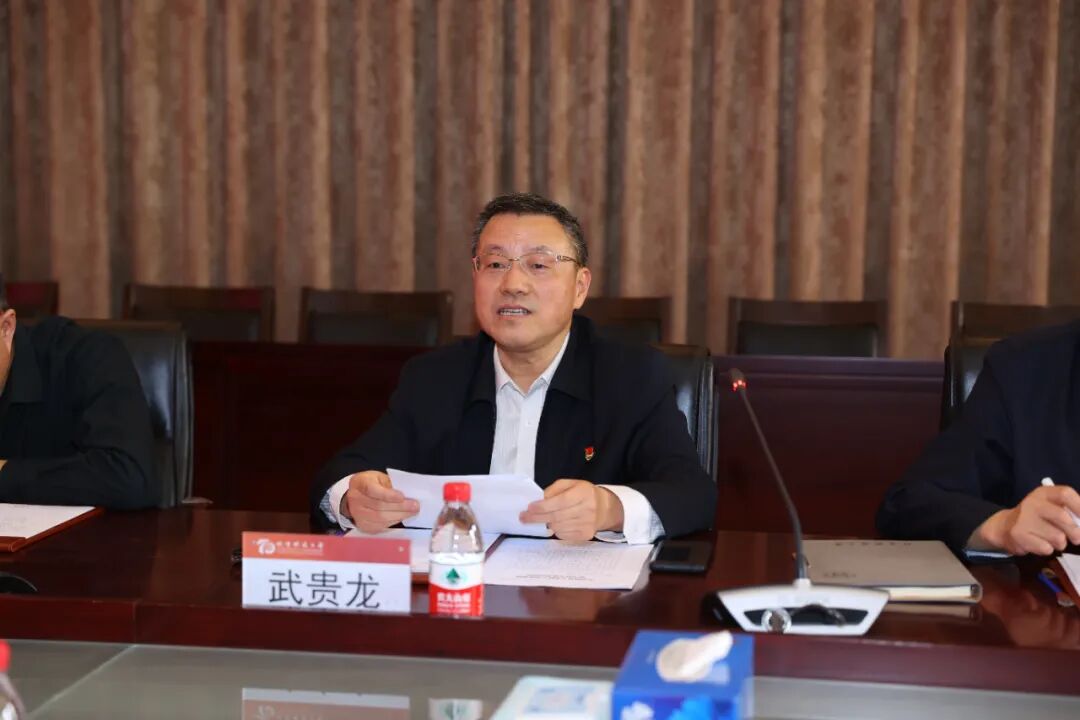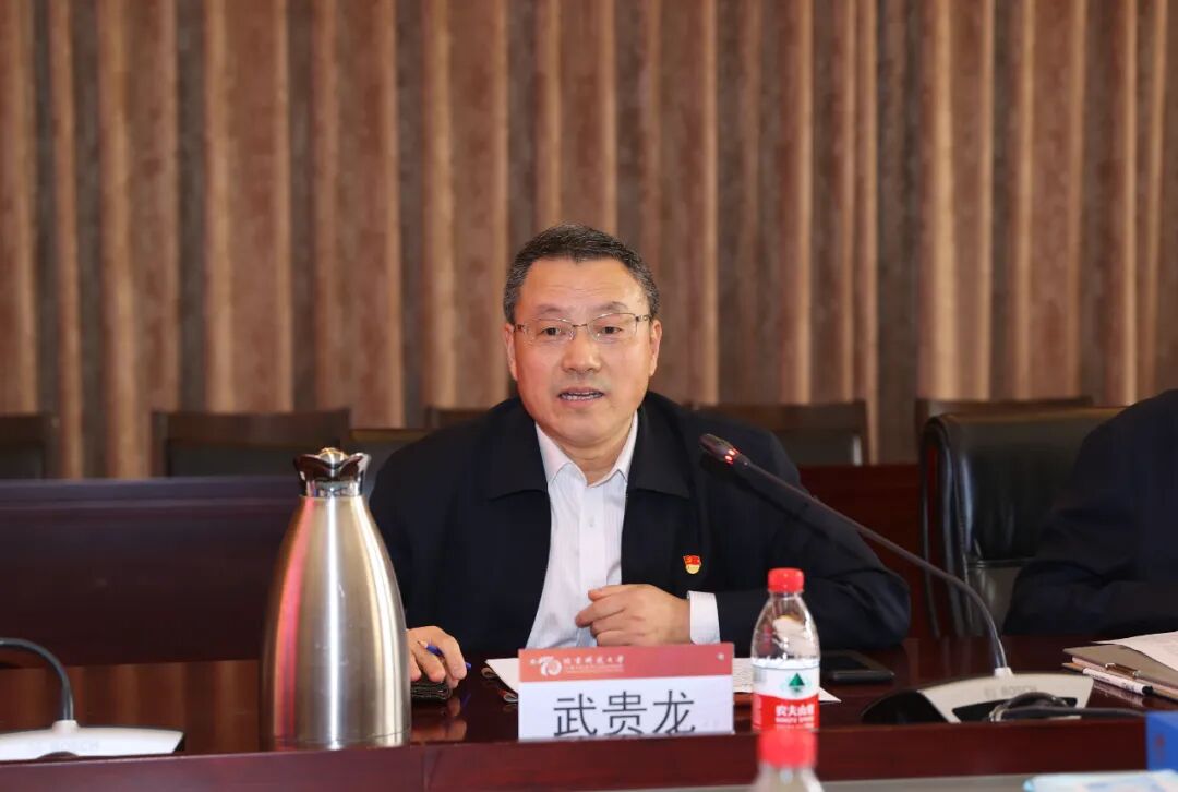 会上,武贵龙指出,习近平总书记在建校70周年的重要时刻给我校老教授们回信,肯定了北京科技大学70年来作出的积极贡献,并对北京科技大学下一阶段的发展提出了新目标新希望,体现了习近平总书记和党中央对高等教育、对北京科技大学发展的高度重视和殷切期望,情真意切、催人奋进,令全校师生员工备受鼓舞、倍感振奋,为学校开启新征程指明了方向,提供了根本遵循。要将学习重要回信精神作为首要政治任务,深刻领会精神内涵,迅速掀起学习热潮,坚定社会主义办学方向,瞄准定位、开阔视野、抢抓机遇、乘势而上,把学习成效转化为推动学校发展的动力和源泉,坚持特色、争创一流,胸怀“两个大局”,落实“四个服务”,强化人才培养第一责任,培养更多听党话、跟党走、有理想、有本领、具有为国奉献钢筋铁骨的高素质人才,为全面建设社会主义现代化国家、实现中华民族伟大复兴的中国梦作出新的更大贡献。