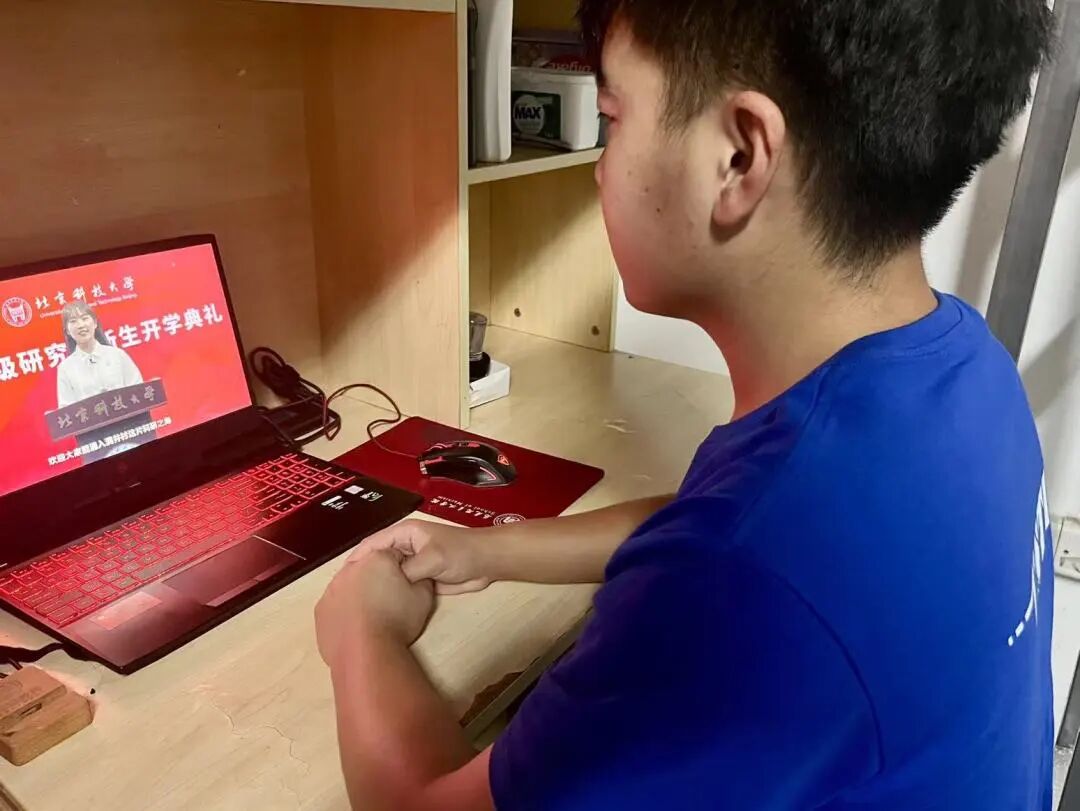 尽管线上观看此次开学典礼,但是丝毫没有减少我对新学校新环境激动开心的心情。对于未来开启的北京科技大学的新生活,我对此产生了浓厚的期待之情,我默默地为自己设定好接下来的目标:我一定要尽快收心,迅速调整状态,认真学习,加强锻炼。我相信在未来的几年中,北京科技大学作为我学习和成长的地方,我会在这里参与许多有趣的故事、我会拥有浓厚的学习氛围、我会感受到师长的亲切指导、我会参与丰富多彩的课余活动,在这里生活的每一天将会有所收获、有所成长!