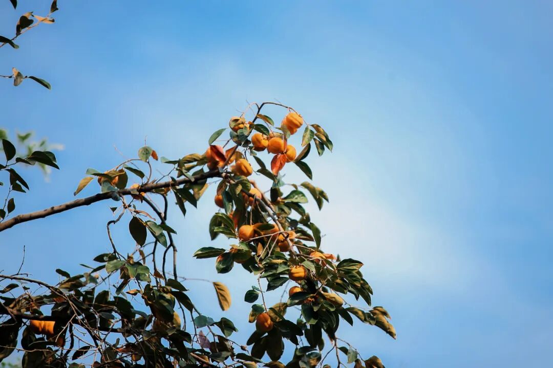 枝头的红柿荫满霜色,凝结年岁尘烟