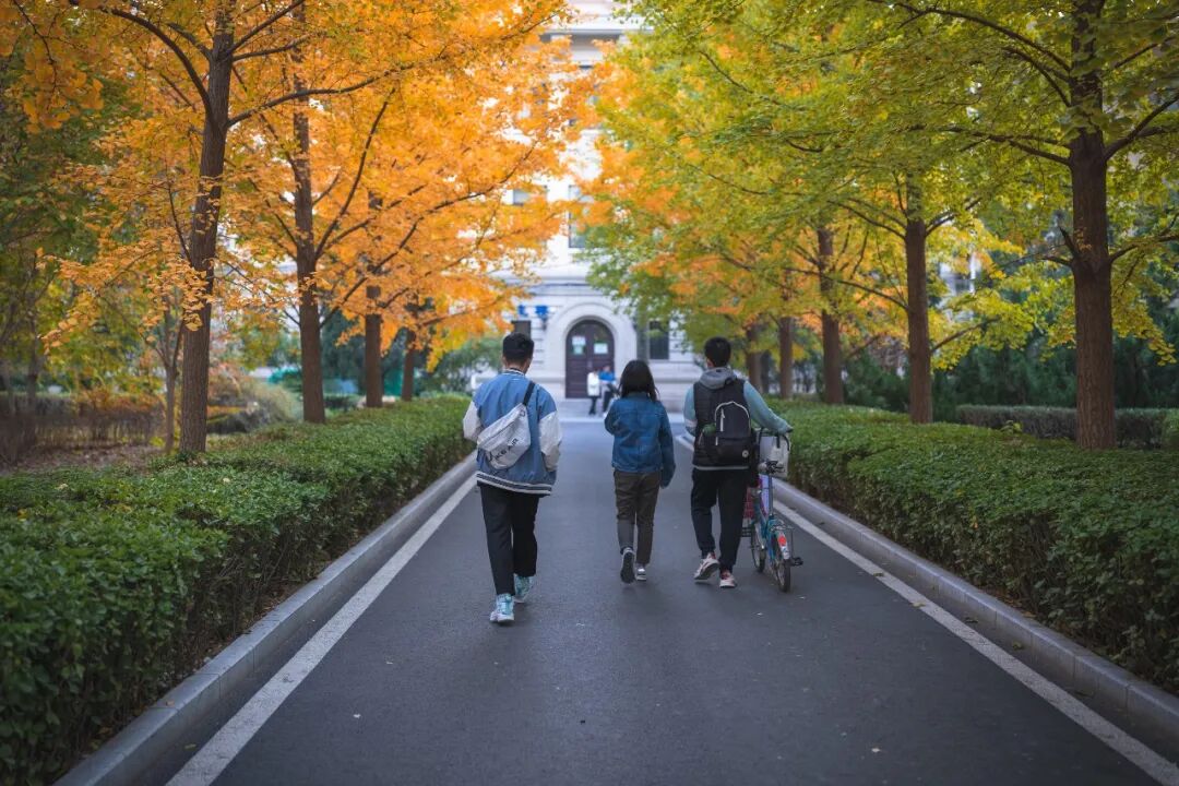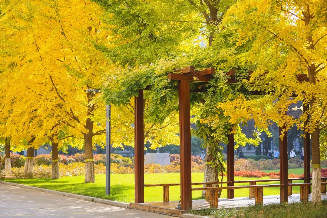 亦翠亦金的银杏大道让一位位小贝壳驻足