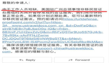 这是美领馆广州签证处发给申请人的预约取消邮件: