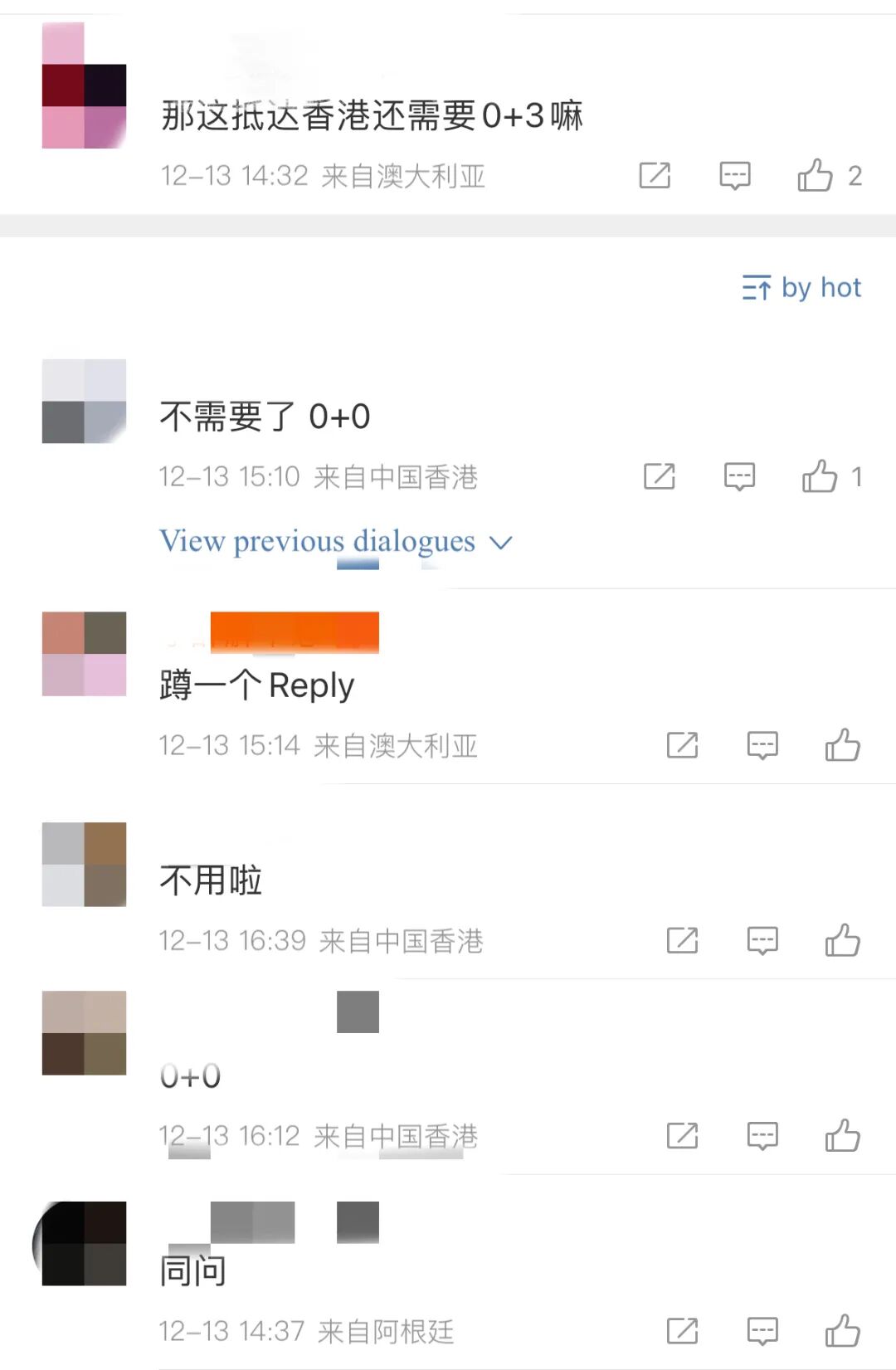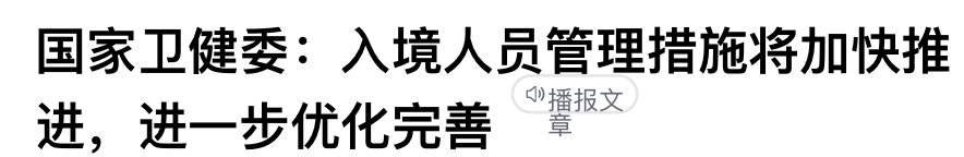 此外,中国两个城市确实开始执行放松入境的一些规定:据了解,澳门取消了入境人士“落地检”及入境后的核酸检测和快速抗原检测措施。澳门特区政府新型冠状病毒感染应变协调中心公布,自2022年12月9日零时起,取消入境人士的落地核酸检测、入境后的核酸检测和快速抗原检测措施。一、当天或过去5天内没有中国内地高风险区旅居史的人士的入境措施:(1) 由中国内地(除广东省珠海市外)直接前往澳门,于登机、登船时须持采样日后48小时内核酸检测阴性证明;(2) 经广东省珠海市前往澳门,入境时须持采样日后24小时内核酸检测阴性证明。二、由香港特别行政区,中国台湾地区和外国入境澳门及当天或过去5天内有中国内地高风险区旅居史的人士,解除医学观察后的措施,由原本的3天澳门健康码为“红码”,改为3天“黄码”,并于最后1天进行核酸检测,结果为阴性后转为“绿码”。香港特区政府医务卫生局副局长李夏茵8日宣布,将确诊人士隔离期和密切接触者的检疫期均缩短至5天。从台湾或海外地区抵港人士须进行每日快速抗原测试亦调整至抵港后第5天。有关措施9日零时起生效。在现行安排下,未接种或只接种一剂新冠疫苗的确诊人士须进行14天隔离,已接种至少两剂新冠疫苗的确诊人士可在取得第6天及第7天(或在其后任何连续两天)的快速测试阴性结果后,提早完成隔离。至于确诊人士的密切接触者须进行14天检疫,但已接种至少两剂新冠疫苗的密切接触者可在取得第6天及第7天的快速测试阴性结果后,提早完成检疫。李夏茵表示,因应最新的疫情发展和风险评估,并考虑到个别特定群组缩短检疫期的经验,特区政府决定调整适用于所有人士的隔离、检疫和检测的安排。确诊人士如在检测阳性后第4天及第5天进行快速抗原测试并取得阴性结果,便可以于第5天申报测试结果后,提早完成隔离。密切接触者的检疫期同样调整为5天。密切接触者在检疫期间须每天进行快速测试,若他们每天的快速测试均取得阴性结果,便可以于第5天完成检疫。此外,目前从台湾或海外地区抵港的人士需要在机场抵港时及在抵港后第2天进行核酸检测,亦须在抵港后每天进行快速抗原测试直至抵港第7天,并在每天取得阴性结果后方可外出。由9日起,有关的快速抗原测试要求会作相应调整,所有于12月2日或之后抵港的人士只需按要求每天进行快速抗原测试至抵港后第5天。现有的机场抵港“检测放行”及抵港后第2天强制核酸检测安排则维持不变。除此之外,近日,卫健委还表示,将加快优化入境人员管理措施。12月7日,在国务院发布会上,有记者提问:中国政府什么时候会开放入境防控措施,取消或者调整核酸检测和入境隔离的要求?对此,国家卫生健康委新闻发言人、宣传司副司长米锋表示:这个问题大家也都很关心,这次优化措施主要是针对国内各地的疫情防控,对于入境人员管理等外防输入的措施,我们也将依法依规、逐步推进、加快推进,进一步优化完善。而全国人大常委谭耀宗则表示,希望在新年前,香港能与内地通关。“一个可能是隔离日期缩短,或者对防疫要求方面,有些方面不再强调,或者是增加通关名额。”12月9日,网上有消息称,浦东机场等国际航班的入境旅客取消集中隔离,做完核酸后居家隔离。