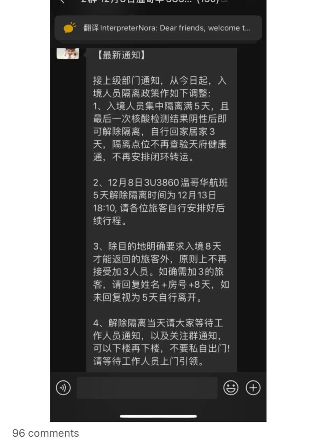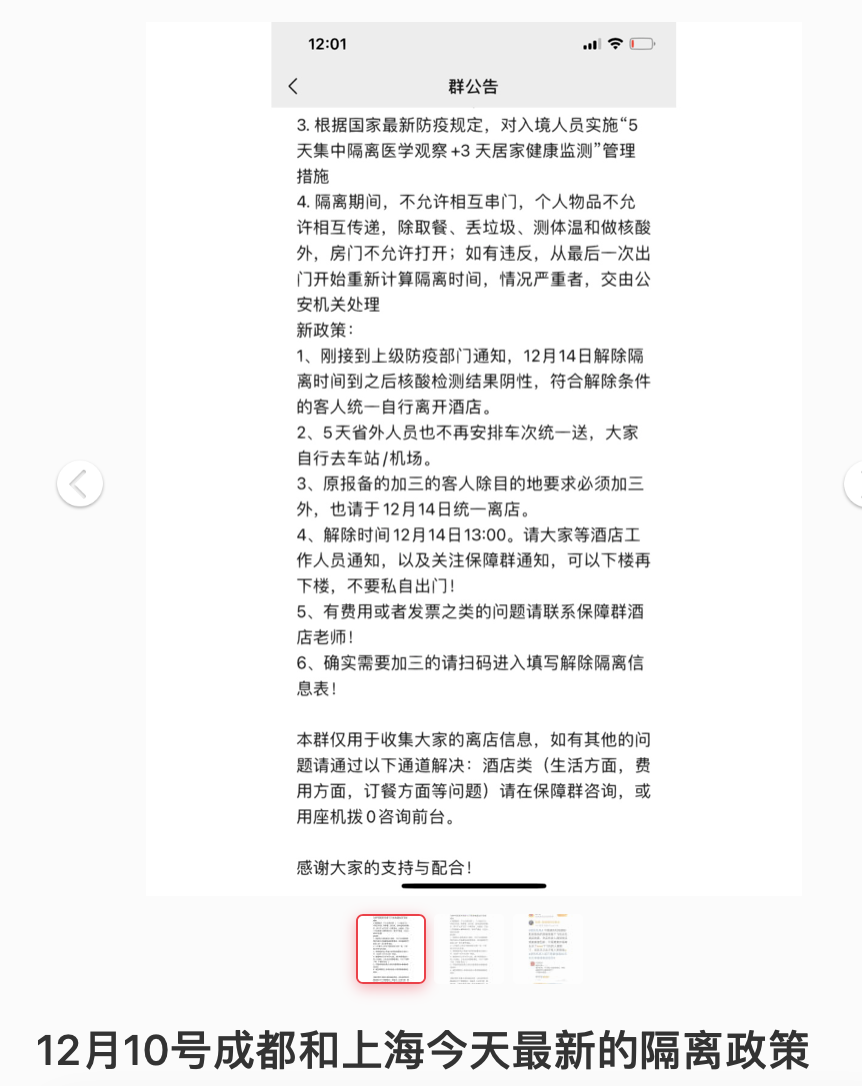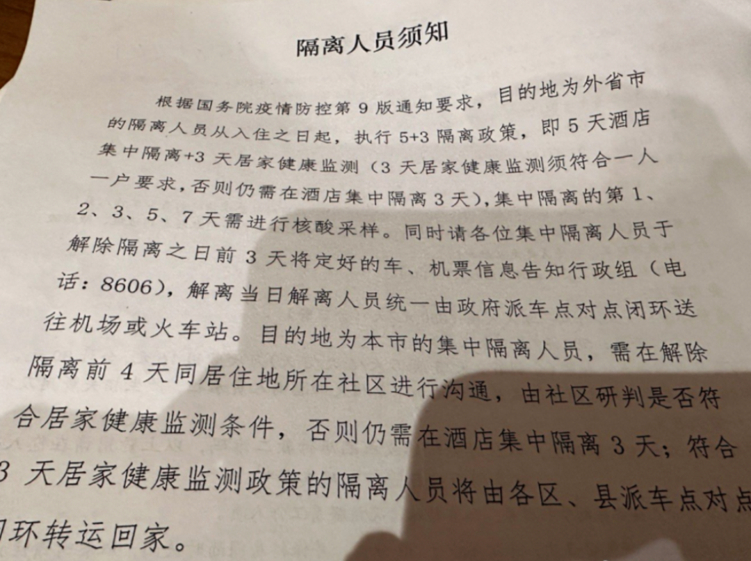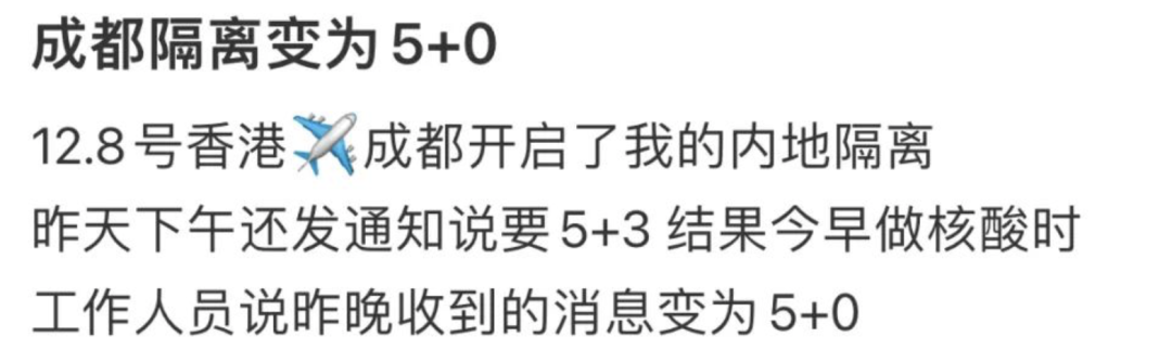 除此之外,有人透露称,成都的各隔离酒店发出通知,告知正在隔离中的入境人员,原本应该隔离5+3的人员,即刻起隔离满5天即可解隔离。![]()
