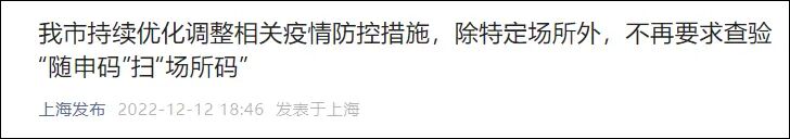为了应对电话呼入高峰,北京急救中心扩容120调度指挥系统,调整接听调派模式,优化调派流程,调整人员班次,补充力量增加120接听受理座席。根据教育部统一部署,2023年全国研究生招生考试将于12月24日—26日举行。北京市全面贯彻落实教育部研考工作部署,加强工作调度,教育部门会同国家教育考试局级联席会议成员单位切实做好考试组织工作,认真开展考生信息摸排,根据疫情形势和防控政策不断优化完善考试防疫方案,研究制定考试组考方案、安全方案,科学设置考点考场,强化试卷流转保存、应急处置等措施,确保实现“如期考试”“应考尽考”“平安研考”,保障考生合理诉求。新冠病毒的致病性减弱,广大市民无需对病毒“谈虎色变”,出现发热等症状时不要恐慌,首选居家休息、合理用药、自我康复,如症状持续加重及时到医疗机构就诊。近期医疗机构发热患者较多,前往医疗机构就诊时务必做好个人防护。为了避免大量人群集中感染导致疫情高峰,对正常生产生活和就医秩序产生较大影响,在现阶段我们仍需尽可能减缓疫情的传播扩散,通过适当的防护和管理措施减少疫情对正常社会秩序的影响,有序、平稳实现防控策略的转换。优化防疫措施落实有个过程,平稳过渡并非易事,难免会有不同声音,也会有谣言传播。要不信谣、不传谣,从权威渠道获取权威信息,从专业部门获取科学防护知识,从早日恢复正常生产生活秩序共同目标出发作出每一个人应有贡献。13日零时起,除特定场所外,不再要求查验“随申码”扫“场所码”,全市疫情风险区“清零”,实施常态化防控措施。上述措施自2022 年 12 月13日零时起实施。重要机关、大型企业及一些特定场所,可根据需要自行确定健康码查验等防控措施。后续,本市将根据国家政策和疫情形势动态调整相关措施。除此之外,12月13日零时起,上海7个高风险区解除管控:- 静安区江宁路街道、彭浦新村街道、临汾路街道;闵行区梅陇镇;嘉定区江桥镇全域实施常态化防控措施。