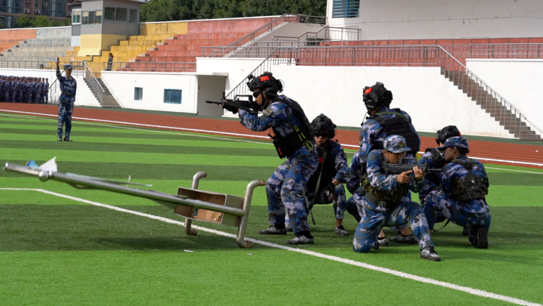与往年不同,今年的汇演不仅有分列式、军事技能,更多了具有学院特色与学生特长的节目。“比如新闻与传媒学院,排练了他们擅长的诗朗诵,还有很多女生喜欢跳舞,我们就安排了啦啦操。”二营营长郑涛说道。在展示军事技能的基础上,多样性的活动给同学们提供了展示自我的平台,让大家在军训的同时,有机会去发展更为全面的自我。