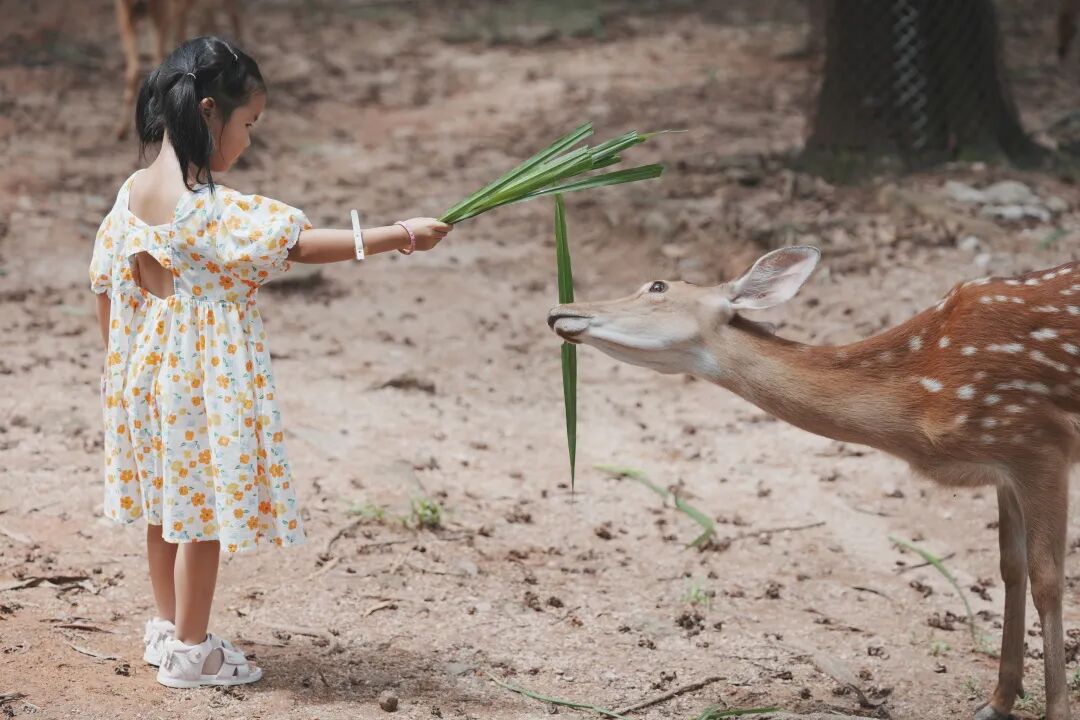 深圳野生动物园设置了定时投喂小动物的环节,让你真正意义的和小动物近距离互动。梅花鹿、长颈鹿、东北虎……都有机会亲手去投喂哦。