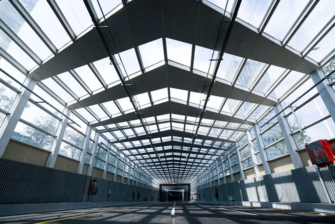 则采用防火搪瓷钢板,搭配连续的照明灯带,不仅大大提高了桂庙路整体景观品质,更为市民创造了舒适、明亮、安全的隧道驾乘环境。