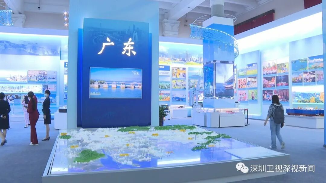 广东单元整体展览紧扣“奋进新时代”主题,由“改革开放在更高起点上纵深推进” “粤港澳大湾区建设成就斐然” “深圳中国特色社会主义先行示范区建设全面铺开” “科技和产业创新高地加速建设” “美好生活画卷不断铺展”五大版块组成。