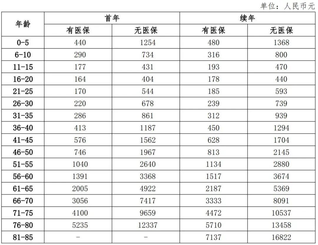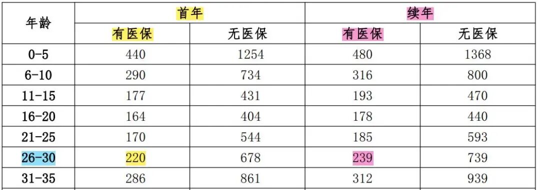 7.还是上图的费率表,张三在30岁续保的保费又是多少?