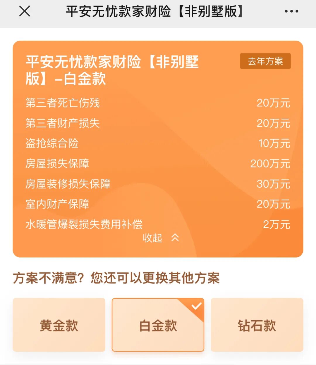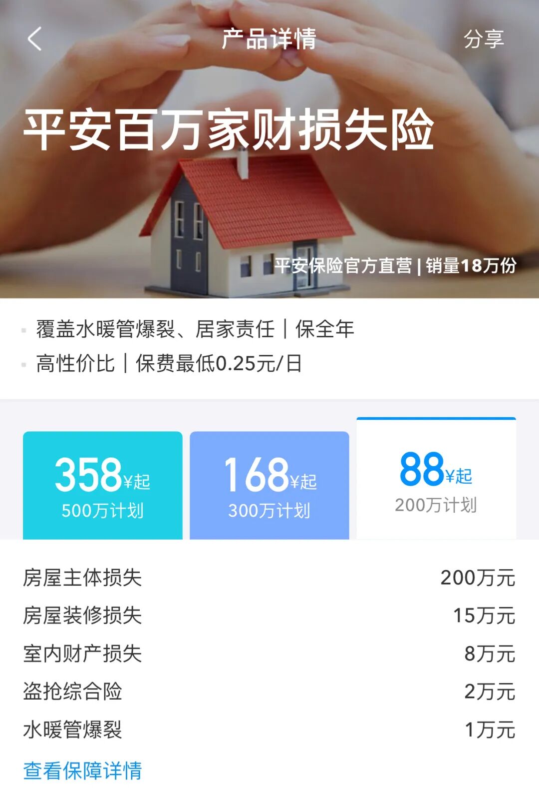 全名:「平安百万家财损失险」