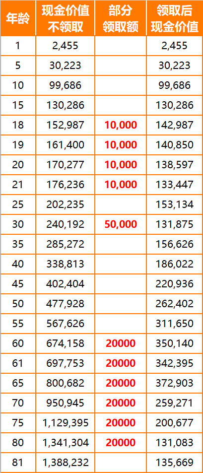 领取之后,后一栏的现金价值会相应减少。