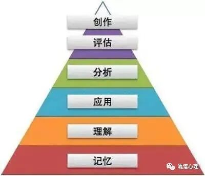 2.有位心理学家Bloom曾经对孩子的思考能力进行了分类(如下图),从低阶到高阶一共有6大分类,并提出孩子的思考能力发展都是从底层开始,只有掌握了这个层面的能力后才能上升到新的层面,然后逐步提高一直到最高层。由此可见,这当中最关键的就是父母能否有意识地针对高层面的能力进行“启发式”提问,来鼓励孩子更好地发展掌握这个层面的思考能力。