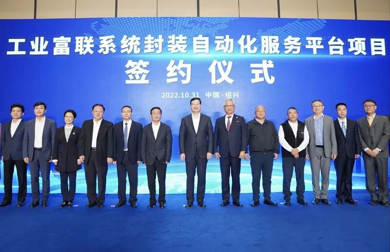 10月31日上午,绍兴滨海新区管委会与富士康工业互联网股份有限公司举行合作签约仪式,双方将在绍兴合作共建工业富联系统封装自动化服务平台项目。市委书记盛阅春等见证签约,市委副书记、市长施惠芳,省台办副主任周晁利,富士康工业互联网股份有限公司首席执行官郑弘孟讲话,市领导王涛、叶卫红等参加。