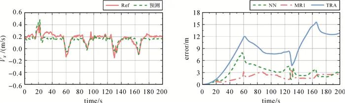 | 图 10 深度学习模型预测的侧向速度及其水平定位误差序列Fig. 10 Lateral velocity predicted by depth learning model and its horizontal positioning error sequence |