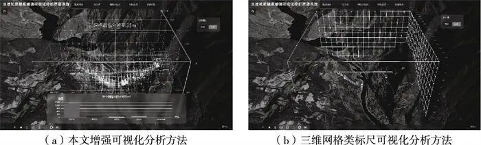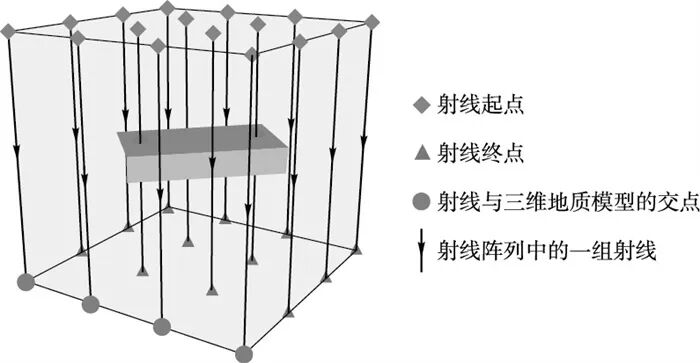 现有三维地质模型可视化交互分析方法有剖切分析[13-16]、体素可视化[17-19]、三维网格类标尺[20-24]等。其中,剖切分析可以较好地展示三维地质模型内部单个平面上的构造、形态特征等,但会导致被剖切掉的区域信息丢失,无法获取完整的特征信息。体素可视化可以较好地保存三维地质模型整体的空间几何特征,但用户在量化分析时的交互较为烦琐。三维网格类标尺存在以下问题:使用时需将视角调整至特定的位置,用户交互体验较差;当网格分辨率较低时,分析精度较差,而当网格分辨率较高时,线框密集堆叠,可视化效果较差。同时,三维地质模型的不规则几何特征也导致现有方法交互分析过程效率不足。