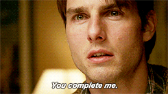You complete me(你填补了我的生命),是他眼噙热泪向爱人表白时的情话。