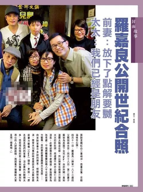 ▲他的前妻叫方敏仪,两人相识于微时,那时罗嘉良还是个小绘图员,在夜校进修班认识了老婆,也是方敏仪陪他度过了不红的低潮时期。罗嘉良说“敏仪是我最好的朋友,没有人比她懂我。”结果,因为和宣萱的绯闻,导致二人感情变淡。后来罗嘉良北上捞金,和老婆分居很久,再后来认识了苏岩,二人就离婚了。离婚后罗嘉良是认亏的,将儿子的抚养权、婚内财产以及价值千万的愉景湾豪宅都给了太太,几乎等于净身出户,后来两家人关系也好,但即算是这样,香港的师奶们也不想见到他的脸。