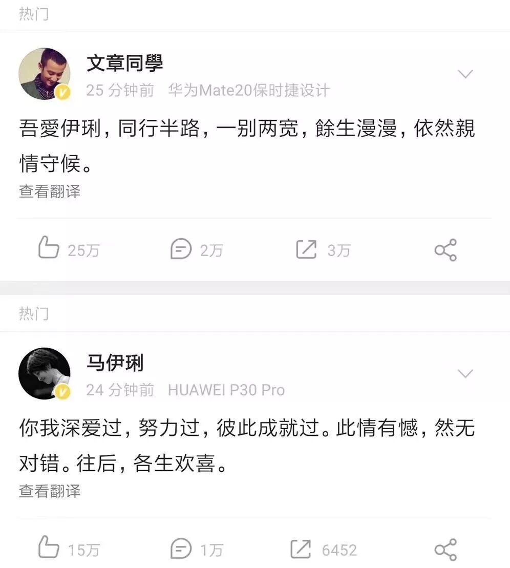 马伊琍和文章终于离了。