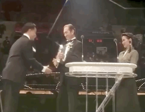 ▲当年赌王和女儿一起还为张国荣颁过奖,看大家姐这含情脉脉的目光。