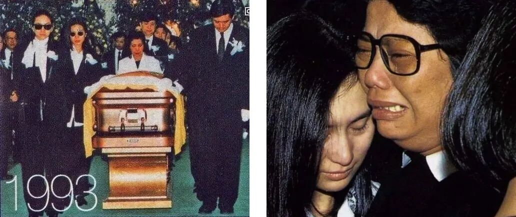▲1993年,陈百强去世,何超琼和周润发、梅艳芳、钟楚红一起为他扶灵,并且和陈母相拥而泣。